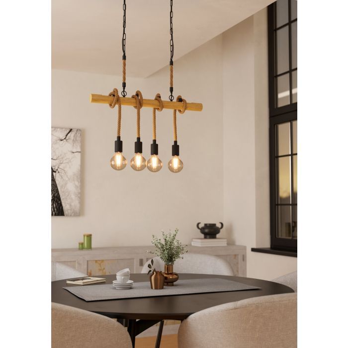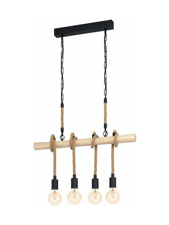 Eglo Youngstown Μοντέρνο Κρεμαστό Φωτιστικό Πολύφωτο με Σχοινί για 4 Λαμπτήρες E27 σε Μπεζ Χρώμα 43318