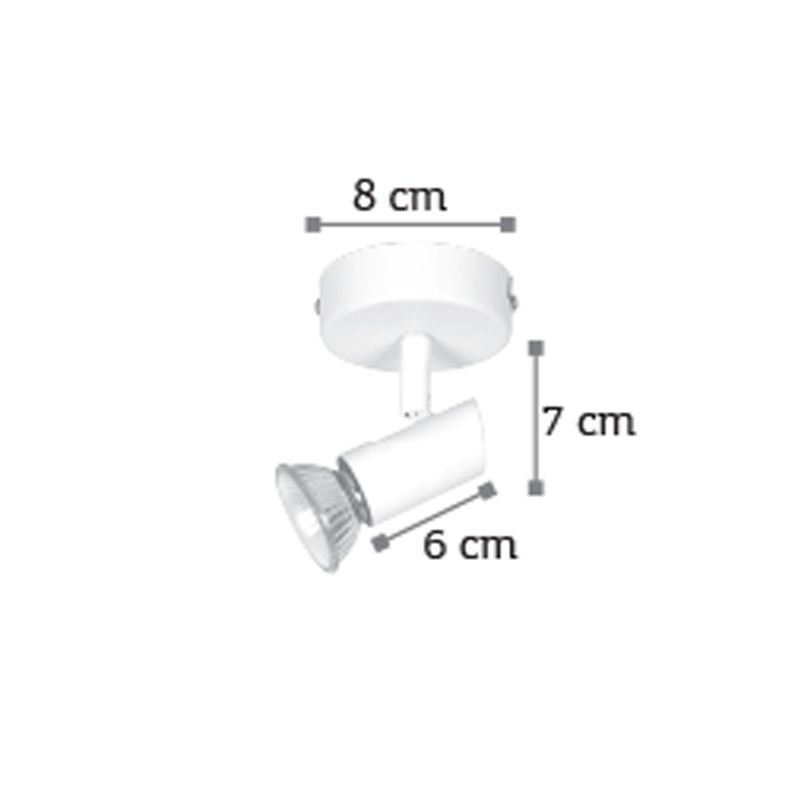 Πρόκειται για ένα μεταλλικό σποτ σε λευκή απόχρωση με έναν λαμπτήρα. Το μπροστινό μέρος του κινείται προς οποιαδήποτε κατεύθυνση. Πρόκειται για ένα μεταλλικό σποτ σε λευκή απόχρωση με έναν λαμπτήρα. Το μπροστινό μέρος του κινείται προς οποιαδήποτε κατεύθυνση.