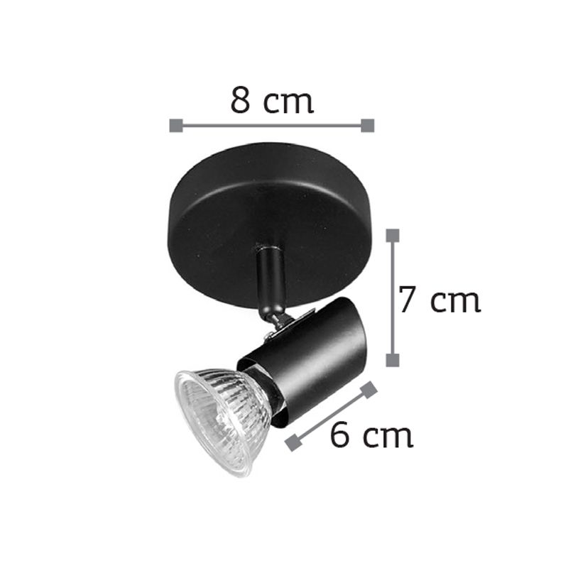 Πρόκειται για ένα μεταλλικό σποτ σε μαύρη απόχρωση με έναν λαμπτήρα. Το μπροστινό μέρος του κινείται προς οποιαδήποτε κατεύθυνση. Πρόκειται για ένα μεταλλικό σποτ σε μαύρη απόχρωση με έναν λαμπτήρα. Το μπροστινό μέρος του κινείται προς οποιαδήποτε κατεύθυνση.