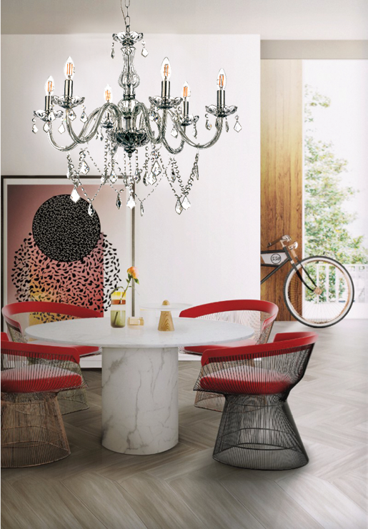 InLight Κρεμαστό φωτιστικό από διάφανο γυαλί και κρύσταλλα 6XE14 D:68cm 5314-6-CLEAR