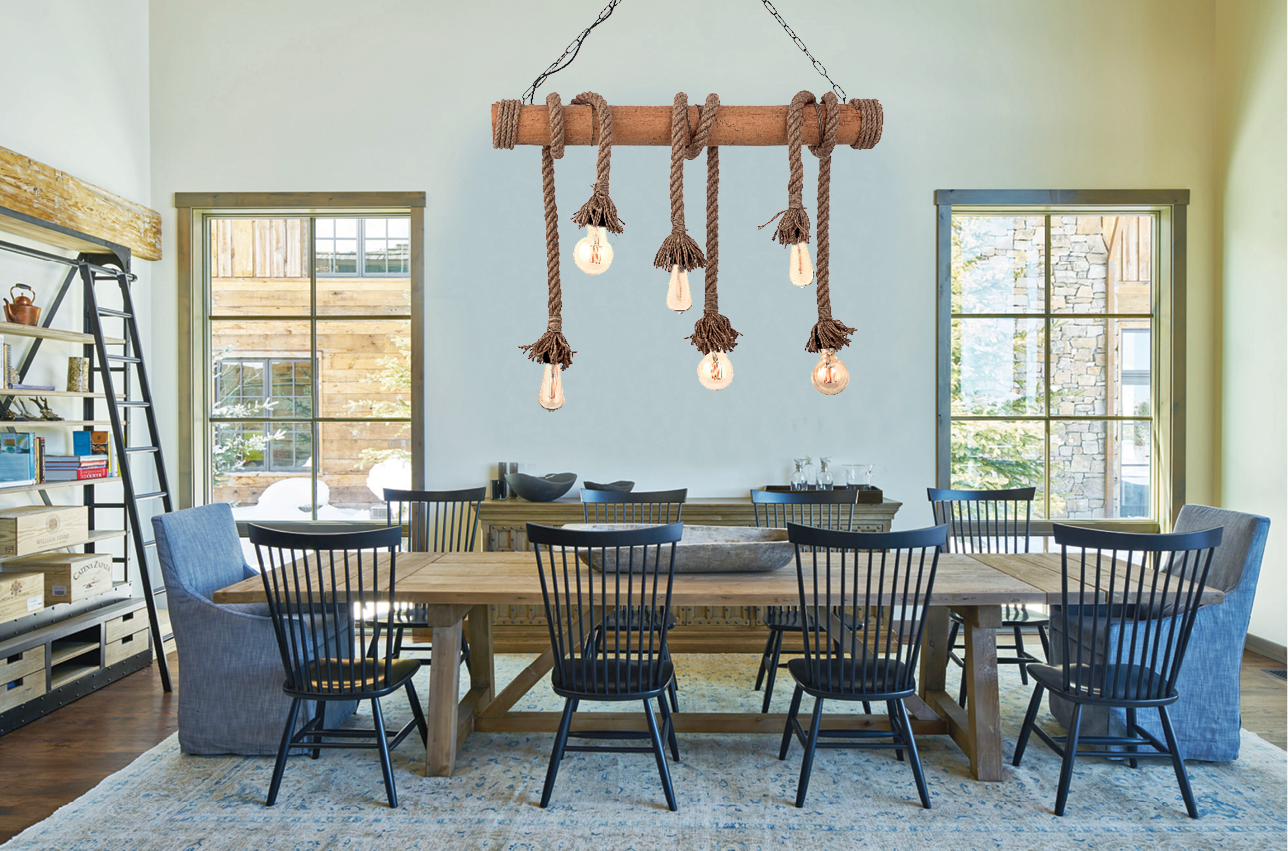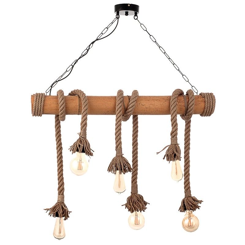 InLight Κρεμαστό φωτιστικό από καφέ σχοινί και μπαμπού 6XE27 D:90cm 5307-6