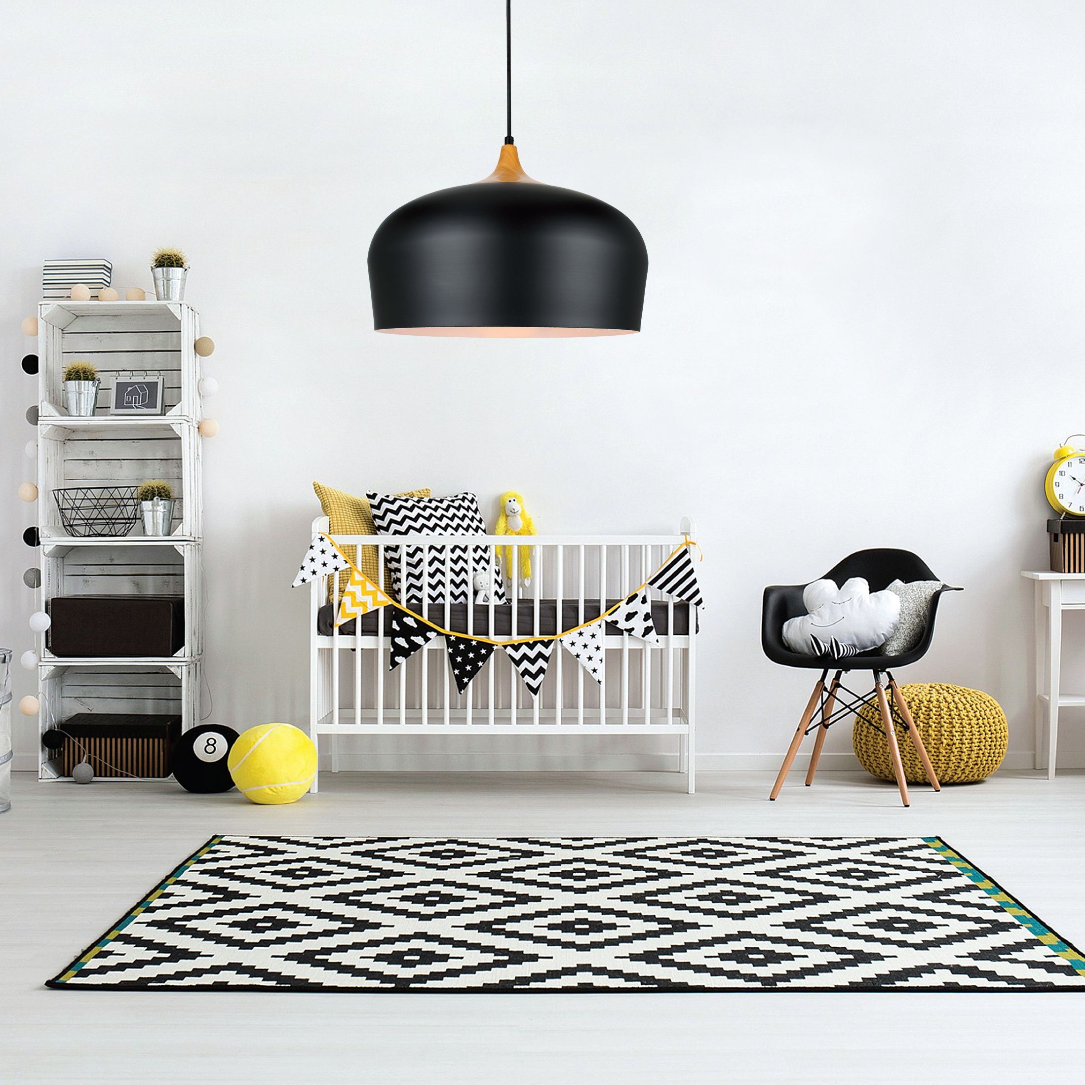 InLight Κρεμαστό φωτιστικό από λευκό μέταλλο και ξύλο 1XE27 D:35cm 4387-WH