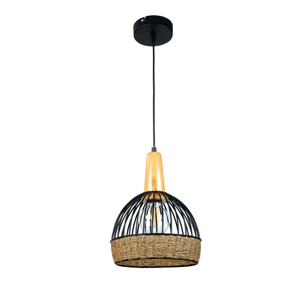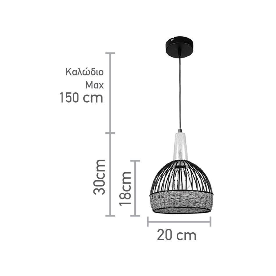 InLight Κρεμαστό φωτιστικό από μαύρο μέταλλο, σχοινί και ξύλο 1XE27 D:20cm 4027-Β