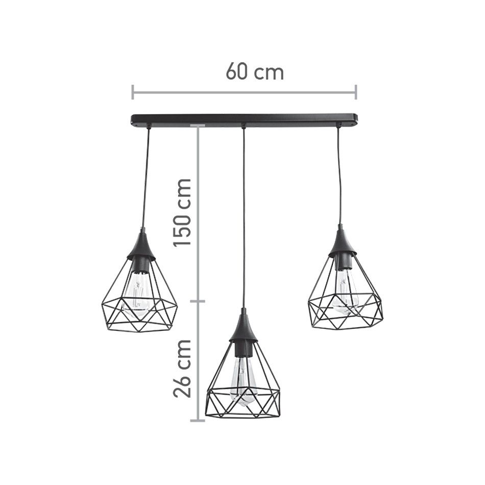 InLight Κρεμαστό φωτιστικό από μαύρο μέταλλο 3XE27 D:60cm 4024-3-BL-RAIL