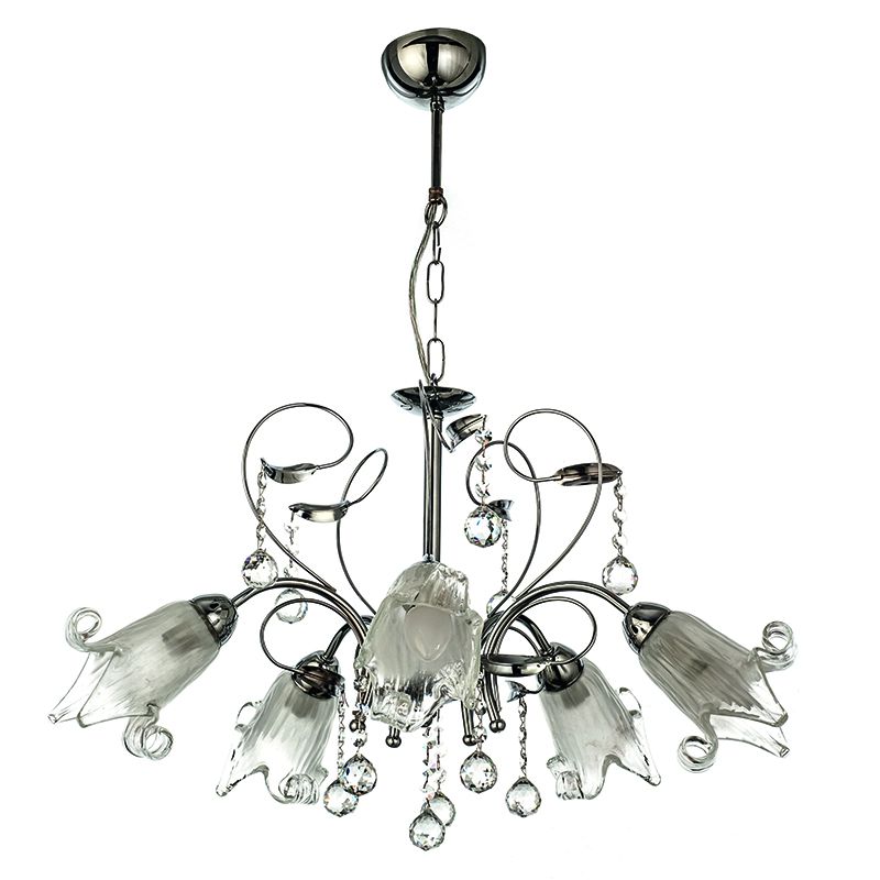 InLight Κρεμαστό φωτιστικό από χρώμιο μέταλλο κρύσταλλα και λευκό γυαλί 5XE14 D:60cm 5300-5-CH