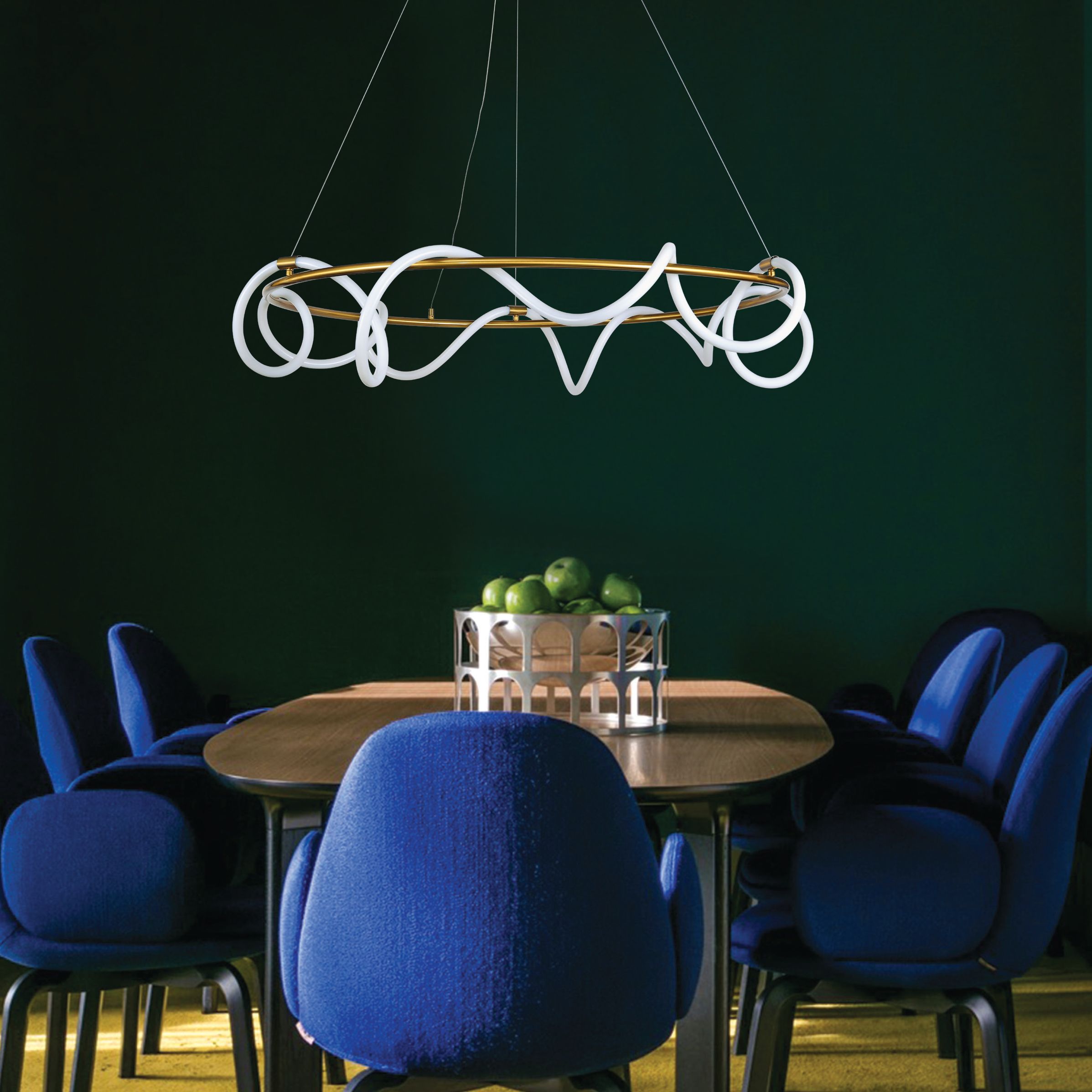 InLight Κρεμαστό φωτιστικό LED 60W 3000K από χρυσαφί μέταλλο και σωλήνα σιλικόνης D:60cm 6017-B-GL