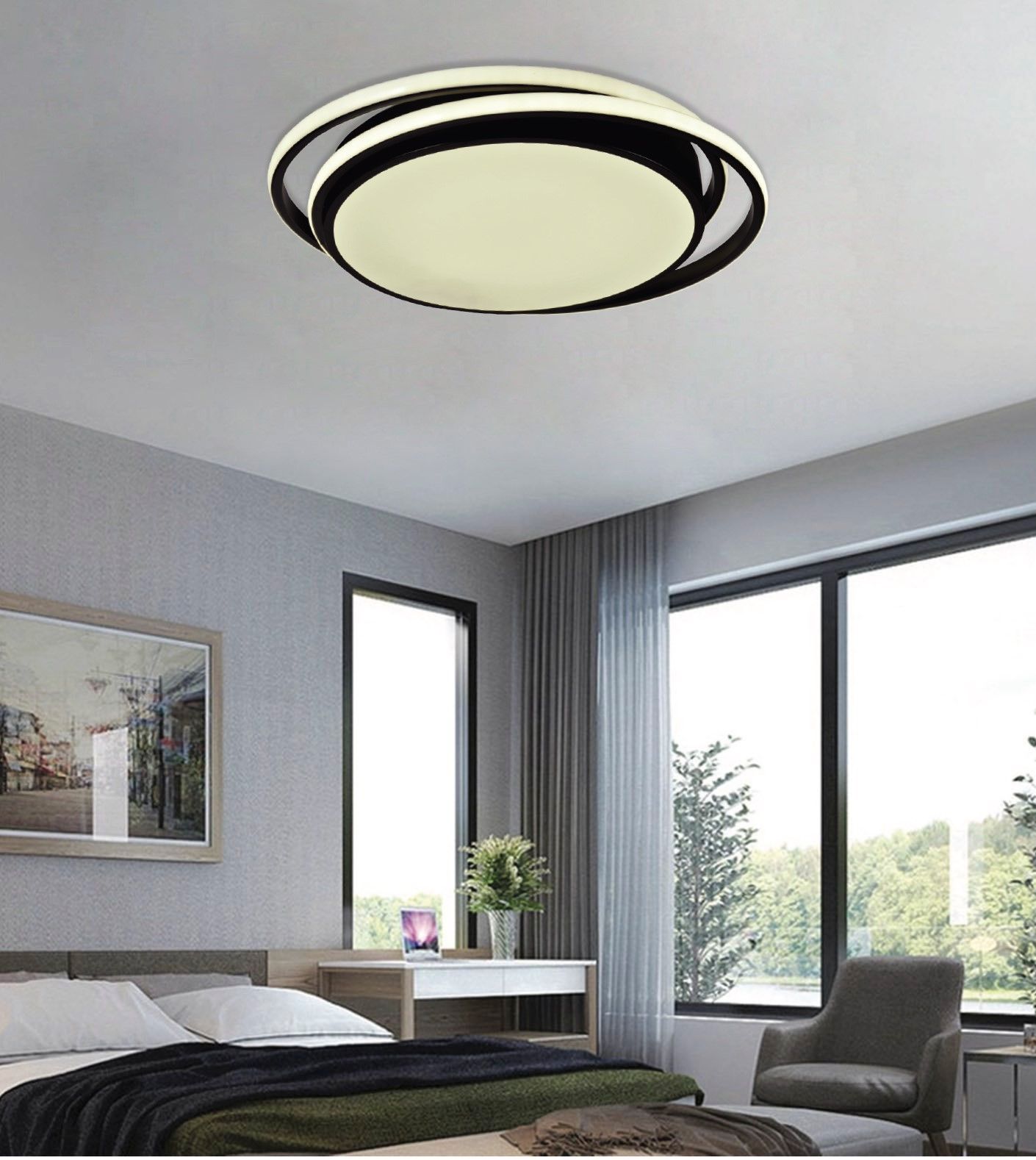 InLight Πλαφονιέρα οροφής LED 60W 4000K από αλουμίνιο σε μαύρη απόχρωση D:43cm 42172-Μαύρο