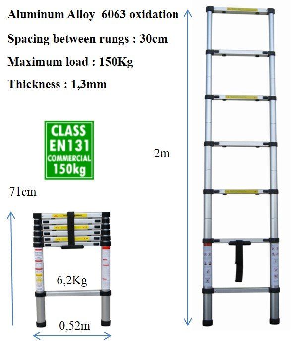 Ladder 200 Tηλεσκοπική Σκάλα αλουμινίου ύψους 2m με 7 σκαλιά JALO