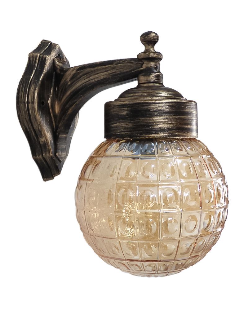 Απλίκα τοίχου πλαστική μπρονζέ με γυαλί μπάλα βιδωτή σε χρώμα μελί LP-110AN BRONZE-MELI