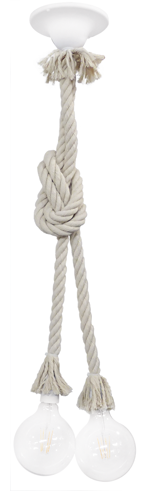 Χειροποίητο φωτιστικό με 2 φώτα & βάση πλαστική λευκή Τεχνικά χαρακτηριστικά βαμβακερό σχοινί H85cm 2 x Ε/27 Χρώμα εκρού E/27 LED Δεν συμπεριλαμβάνονται οι λαμπτήρες Ελληνικό Προϊόν