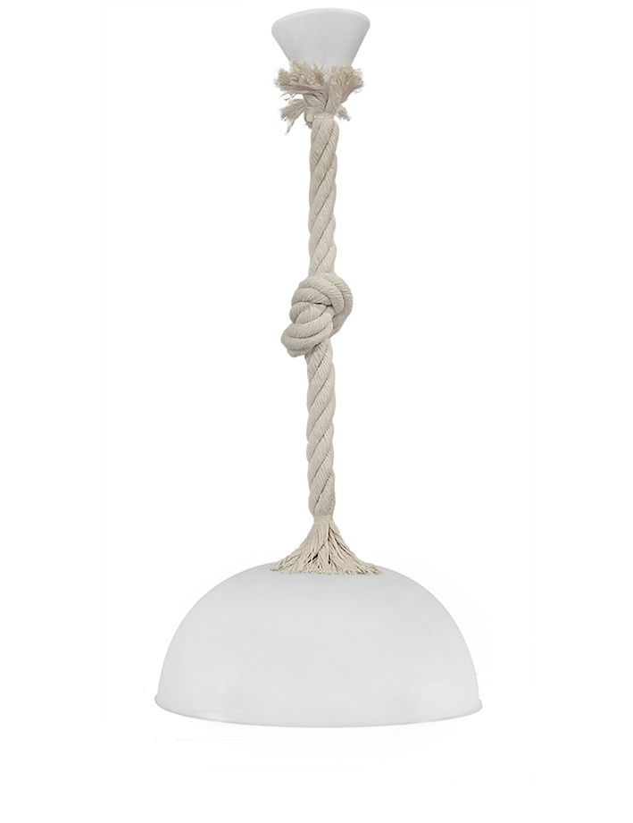 Φωτιστικό κρεμαστό μονόφωτο πλαστικό Φ30 με σχοινί MAC-WHITE κόμπο SFERA/30 1L ROPE MAC-WHITE