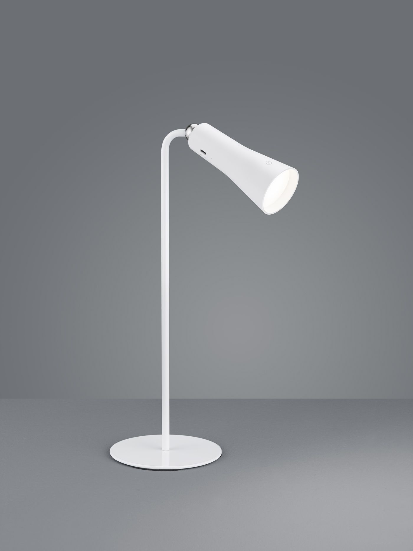 Φωτιστικό γραφείου της Trio Lighting με ενσωματωμένο LED και άκαμπτο βραχίονα, σε λευκό χρώμα.