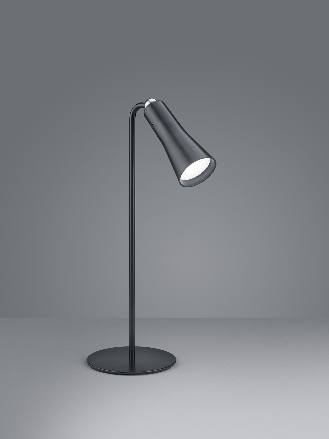 Φωτιστικό γραφείου της Trio Lighting με ενσωματωμένο LED και άκαμπτο βραχίονα, σε μαύρο χρώμα.