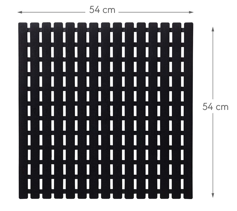 Δημιουργήστε ένα ασφαλές μπάνιο με το αντιολισθητικό πατάκι μπάνιου Nora. Ο κομψός σχεδιασμός σε μαύρο χρώμα εξασφαλίζει ότι το χαλάκι ασφαλείας ταιριάζει σε κάθε μπάνιο. Το τετράγωνο αντιολισθητικό χαλάκι 54x54 cm παρέχει αρκετή αντιολισθητική επιφάνεια στο πάτωμα του ντους.