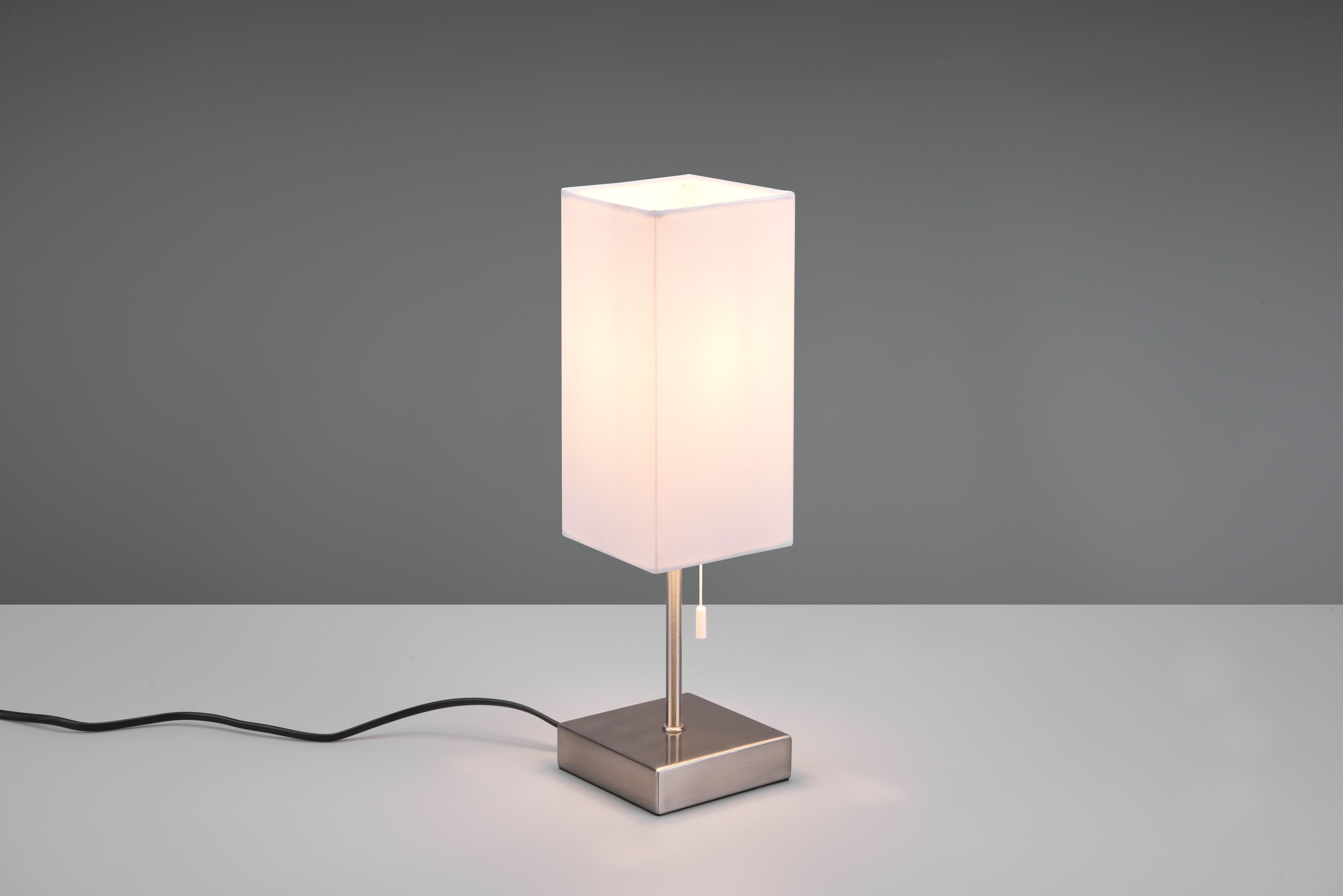 The OLE table lamp can do more than you might think. In addition to a timeless, minimalist design, the lamp has a USB-C and a USB port with charging function. Among other things, smartphones can be easily charged here with the help of a suitable cable. In addition, the luminaire has a pull switch, which allows the luminaire to be switched on and off quickly. The simple yet elegant design with nickel matt metal base and white fabric shade makes the lamp a practical eye-catcher in your living room. For energy-saving lighting, it is recommended to use an LED illuminant. These are an optimal alternative to conventional halogen lamps and stand for a high quality of light and energy savings of up to 80%. In addition, LED lamps help you benefit from a long service life, low heat generation and at the same time protect the environment.
