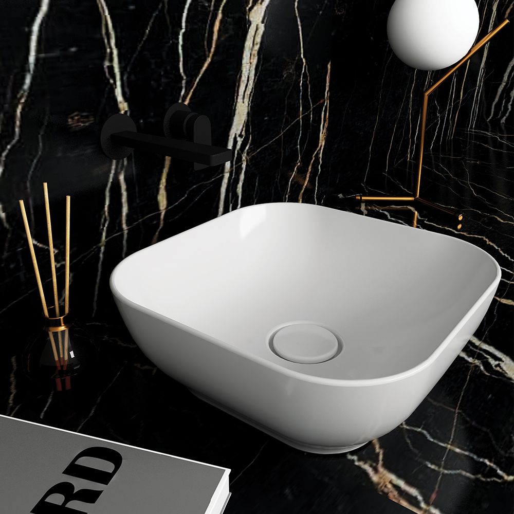 Νιπτήρας χωρίς υπερχείλιση από λευκή γυαλιστερή ή λευκή, μαύρη, γκρι, καφέ-μπεζ, τιρκουάζ ματ πορσελάνη υψηλής ποιότητας. Διαστάσεις νιπτήρα 38Χ38 εκατοστά, με ύψος νιπτήρα 14.4 εκατοστά. Βάθος νιπτήρα 10.3 εκατοστά.