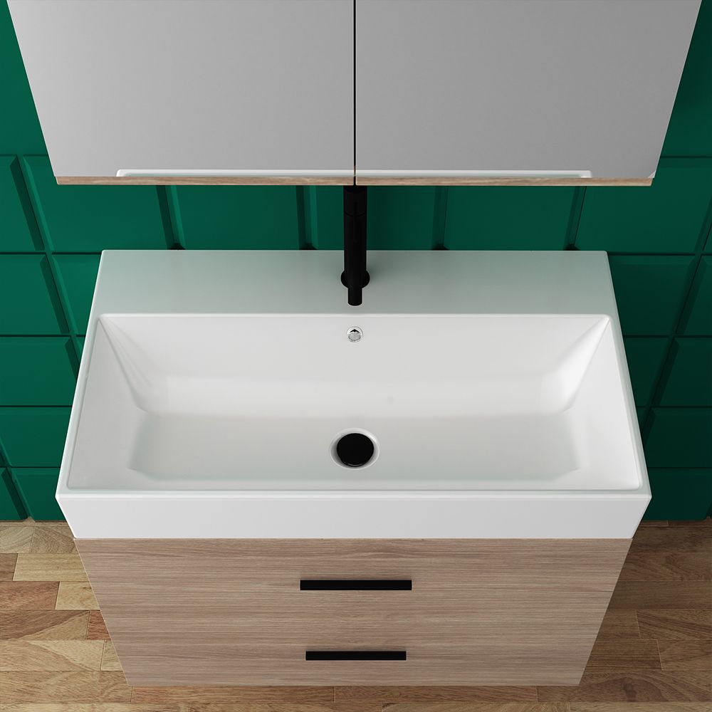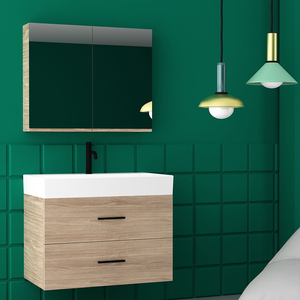 Orabella Amabile 80 με δύο Συρτάρια - Κρεμαστό Έπιπλο Μπάνιου με πορσελάνινο νιπτήρα Tecla και καθρέπτη ντουλάπι F60163-70145-70105-60163