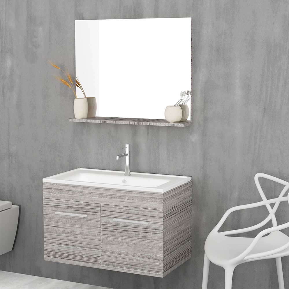 Orabella Lagina 80 - Κρεμαστό Έπιπλο Μπάνιου με πορσελάνινο νιπτήρα Ege και καθρέπτη ντουλάπι F60170-70124-70105-60170