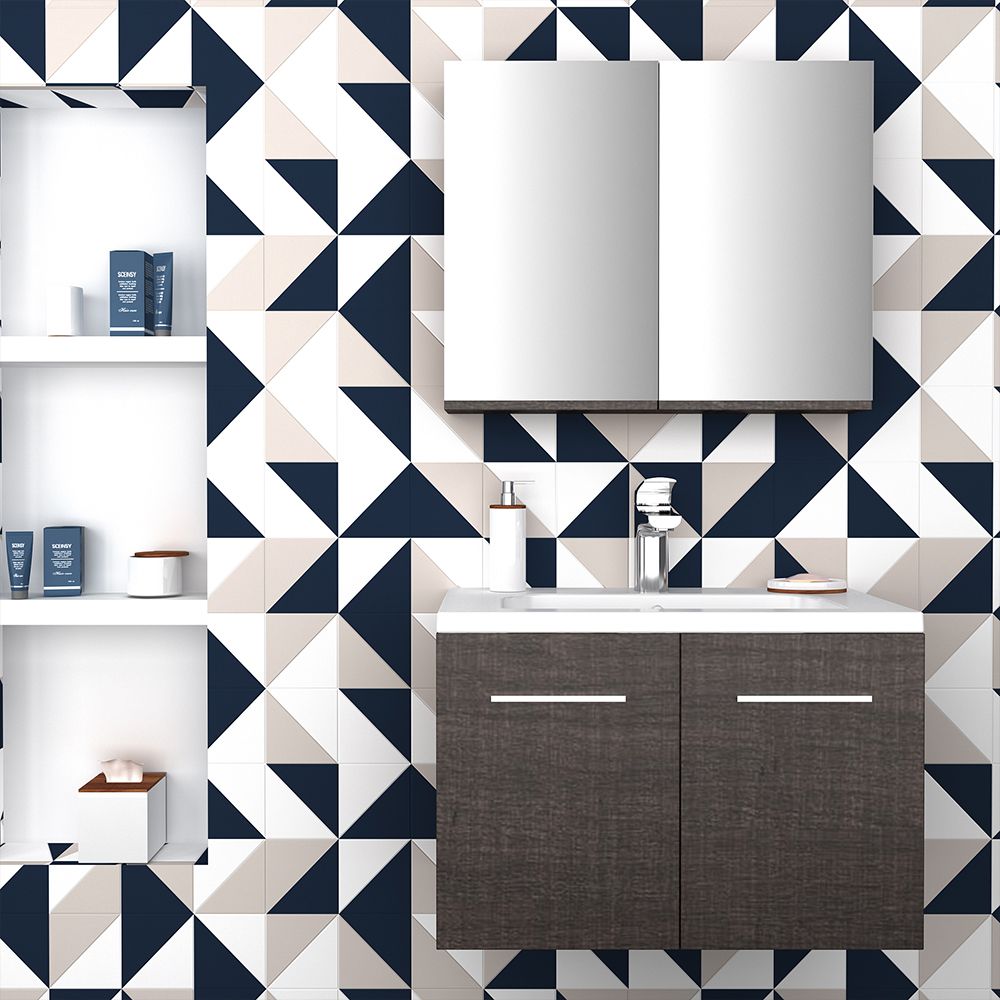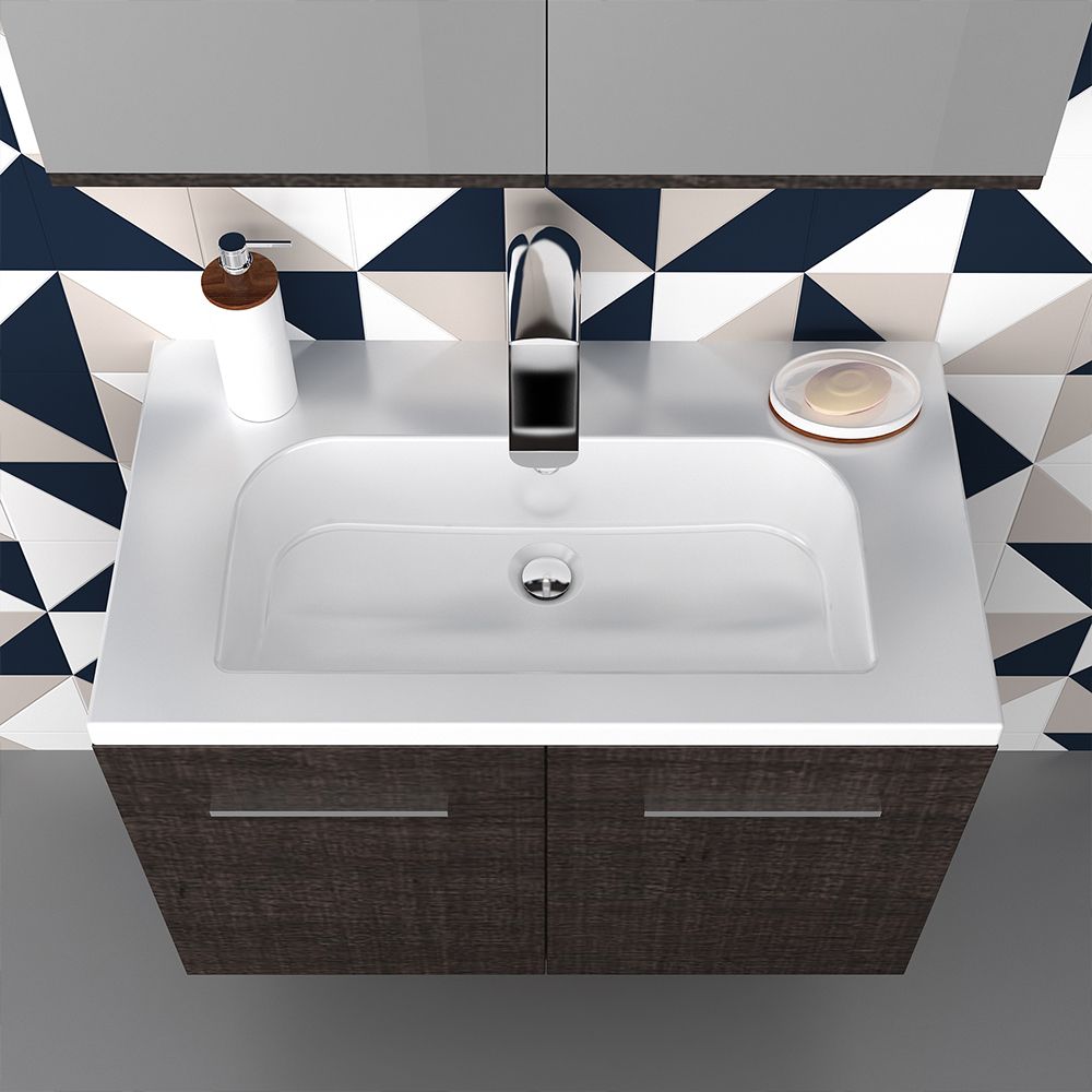 Orabella Mood 80 με δύο Συρτάρια - Κρεμαστό Έπιπλο Μπάνιου με πορσελάνινο νιπτήρα Tecla και καθρέπτη ντουλάπι F60160-70137-70105-60160