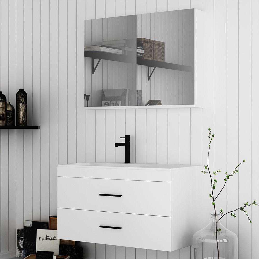 Orabella Raven 90 με δύο Πόρτες και δύο Συρτάρια - Κρεμαστό Έπιπλο Μπάνιου με πορσελάνινο νιπτήρα Olympia και καθρέπτη ντουλάπι F60172-70133-70106-60172