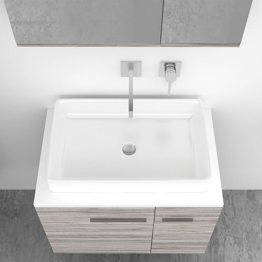 Orabella Solid Surface 70 με μια Πόρτα και δύο Συρτάρια - Κρεμαστό Έπιπλο Μπάνιου για επικαθήμενο νιπτήρα και καθρέπτης ντουλάπι F60175-70158-70103-70159