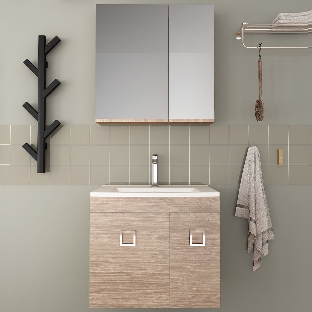 Orabella Vero 65 - Κρεμαστό Έπιπλο Μπάνιου με πορσελάνινο νιπτήρα Ege και καθρέπτη ντουλάπι με χρωμέ λαβές F60173-70102-70220-60173