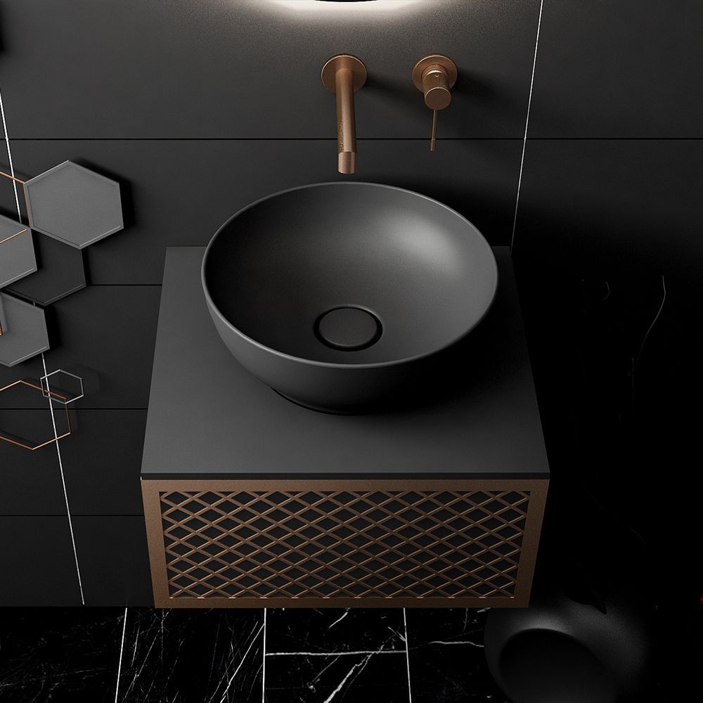 Υλικό επίπλου MDF super matt, anti-spot, για μεγαλύτερη αντοχή στο χρόνο. Ανακλινόμενο πορτάκι με χρωμέ κουμπάσο, δύο μεντεσέδες (χρωμέ ή μαύροι ανάλογα με το χρώμα της βάσης) και μηχανισμό ανοίγματος push. Ο πάγκος κατασκευάζεται από υλικά ματ υψηλής αντοχής στην κρούση, στην κάμψη και στην τριβή με σχεδόν μηδενική απορρόφηση υγρασίας. Προτείνεται η επιλογή καθρέπτη LED με κρυφό φωτισμό και 2 κουμπιά με αισθητήρες αφής on/off και anti-fog αντιθαμβωτικό σύστημα με δυνατότητα επιλογής θερμοκρασίας χρώματος φωτός. Στην τιμή δεν συμπεριλαμβάνεται ο νιπτήρας, η μπαταρία και η βαλβίδα του νιπτήρα. Mπορείτε να προσθέσετε επικαθήμενο νιπτήρα και ορειχάλκινη βαλβίδα κλικ-κλακ για νιπτήρες χωρίς υπερχείλιση. Ομοίως μπορείτε να προσθέσετε μπαταρία νιπτήρος που φέρει την υπογραφή κορυφαίων εταιρειών στον σχεδιασμό ειδών υγιεινής, όπως Pentagono, Orabella by Armando Vicario και Orabella. Προσοχή: οι επικαλύψεις παραδίδονται ατρύπητες.