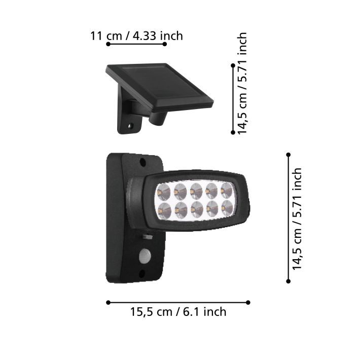 Λεπτομέρειες του προιοντος Lumen Complete:150Κέλβιν εντελώς:3000Αριθμός υλικού:98187Υλικό:πλαστικόΧρώμα:μαύροςΥλικο Γυαλιού/Καπέλου:πλαστικόΧρώμα Γυαλιού/Καπέλου:διαφανήςΒαθμός προστασίας:IP44Λαμπτήρας περ. 1:ΠεριεκτικόςΤύπος Ντουι 1:LEDΛειτουργίες:Αδιάβροχο (IP44), ενσωματωμένος αισθητήρες κίνησηςεγγύηση: -