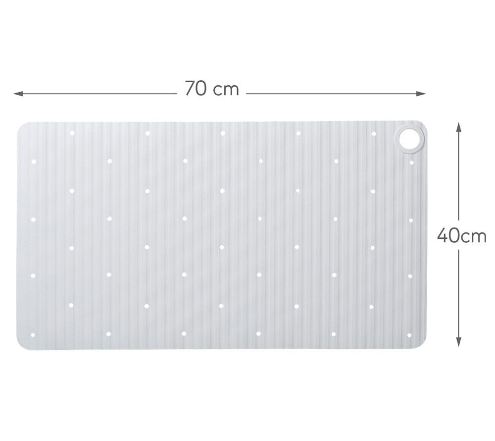 Αυτό το χαλάκι όχι μόνο φέρνει ασφάλεια στο μπάνιο σας, αλλά και άνεση. Το πρακτικό άγκιστρο εξασφαλίζει ότι μπορείτε εύκολα να κρεμάσετε το χαλάκι για να στεγνώσει. Οι στιβαρές βεντούζες στο κάτω μέρος εγγυώνται μεγαλύτερη σταθερότητα.