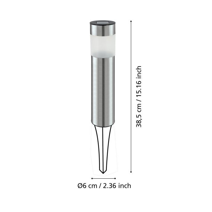 Ύψος Φωτιστικού(σε χιλ./ίντσα):280 / 11,02Διάμετρος Φωτιστικού(σε χιλ./ίντσα):60 / 2,36Βάθος εγκατάστασης (σε χιλ./ίντσα):105 / 4,13Καθαρό Βάρος (kg):1,26