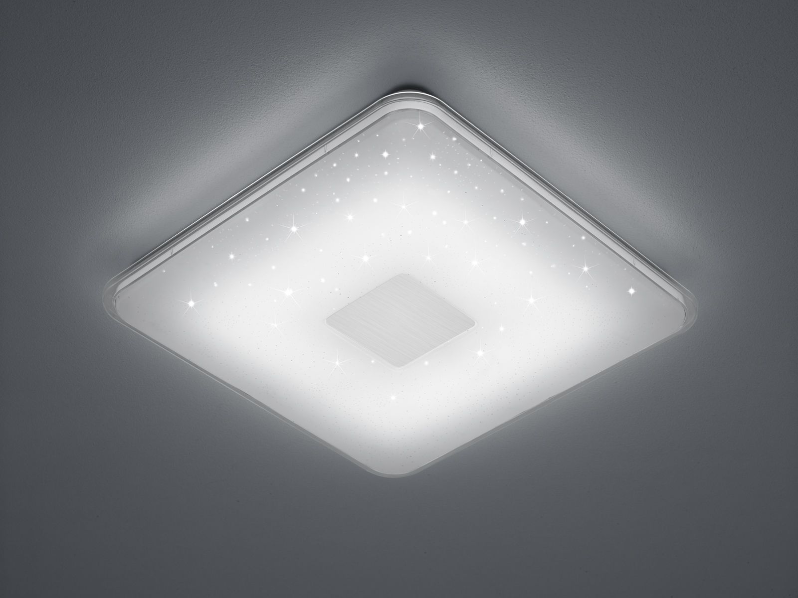 The SAMURAI ceiling light - a modern and simple light that invites you to dream thanks to its starry sky effect. It also impresses with its many different functions, which can be controlled using the remote control included in the scope of delivery. You have the option of dimming the light continuously, adjusting the light colour or switching on the night light function. It is ideal for illuminating a child's bedroom, for example. The light is square and has a side length of 42.5 cm. The design in the colour white invites you to combine it with other colours or can be wonderfully integrated into a modern interior. In addition, the luminaire features modern LED technology, which is characterised by high light quality and energy efficiency. Compared to conventional halogen lamps, up to 80% of energy costs can be saved. In addition, LED light sources have a long service life, produce less heat and protect the environment.