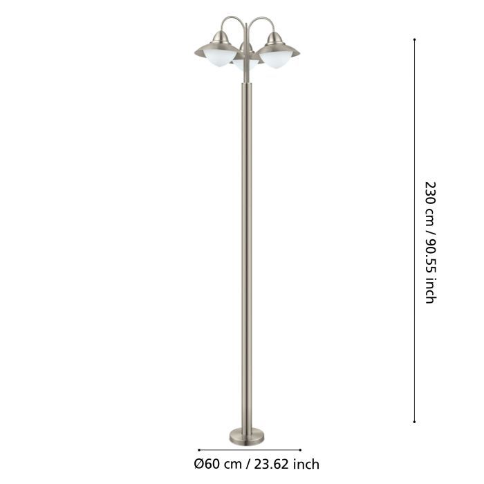 Ύψος Φωτιστικού(σε χιλ./ίντσα):2.200 / 86,61Διάμετρος Φωτιστικού(σε χιλ./ίντσα):600 / 23,62Διάμετρος Βάσης (σε χιλ./ίντσα):200 / 7,87Καθαρό Βάρος (kg):8,26
