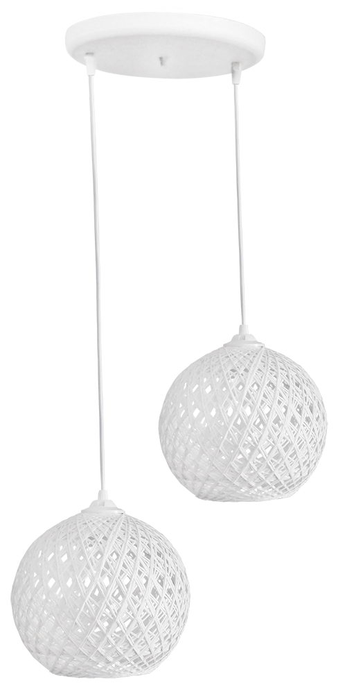 Φωτιστικό οροφής ανισόπεδο με μπάλες πλεχτές σχοινί ,λευκές SILK/2L PENDEL WHITE