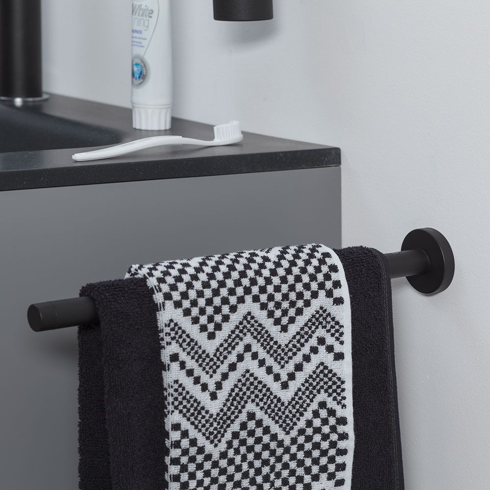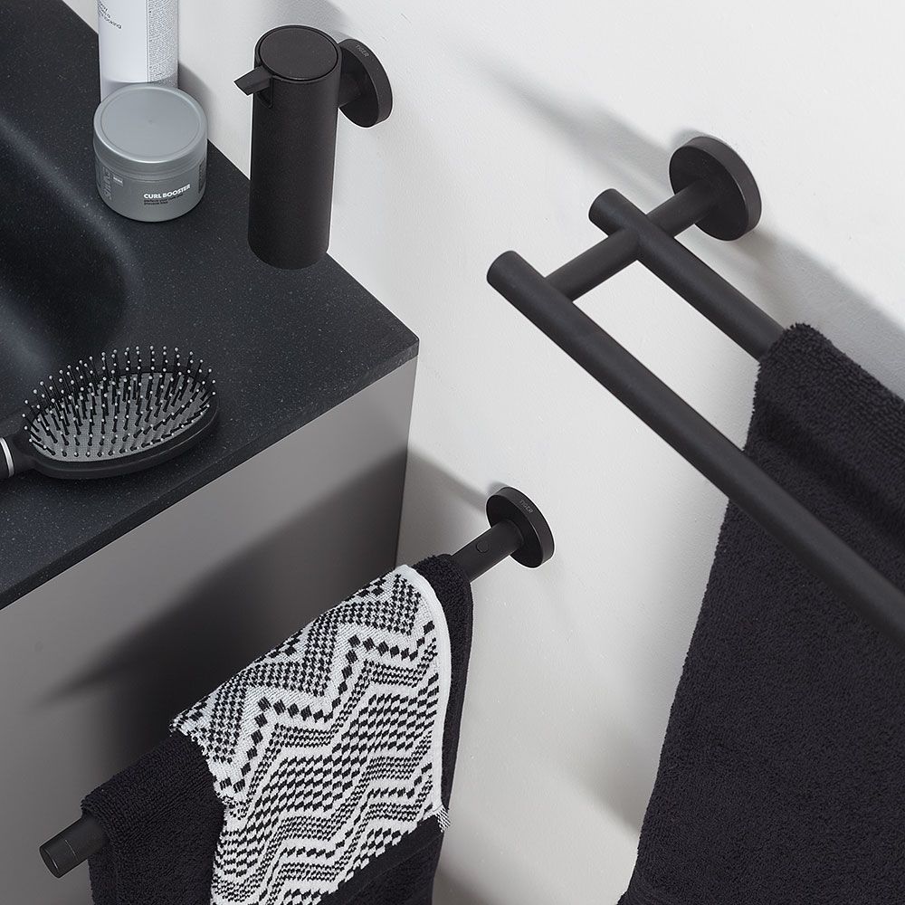 Η τηλεσκοπική κρεμάστρα πετσετών Tiger Boston, με το κομψό μαύρο ματ φινίρισμα, μπορεί να φτάσει έως και 60 εκατοστά. Προσφέροντας χώρο για να κρεμάσετε μια πετσέτα, αυτή η ράγα πετσετών μπορεί εύκολα να τοποθετηθεί στον τοίχο και το υλικό στερέωσης (περιλαμβάνεται) είναι κρυμμένο για μια κομψή εμφάνιση. Αυτή η κρεμάστρα πετσετών εκτείνεται κάθετα στον τοίχο, καθιστώντας την τέλεια εξοικονόμηση χώρου όταν τοποθετείται δίπλα στο νιπτήρα. Η σειρά Boston περιλαμβάνει μια μεγάλη ποικιλία από άλλα αξεσουάρ για το μπάνιο και την τουαλέτα, όλα όμορφα συνδυασμένα.