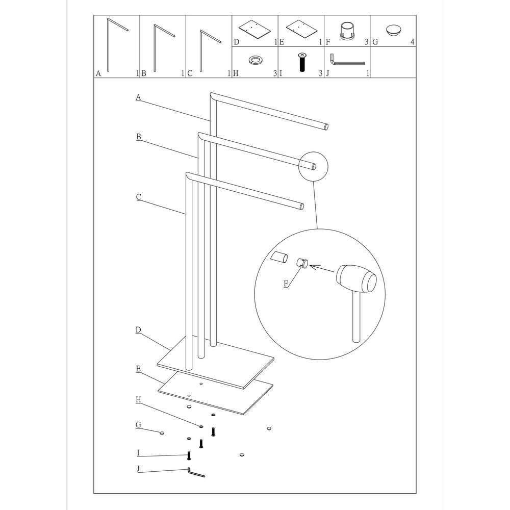 Tube black κρεμάστρα επιδαπέδια 3 θέσεων Sealskin 800201